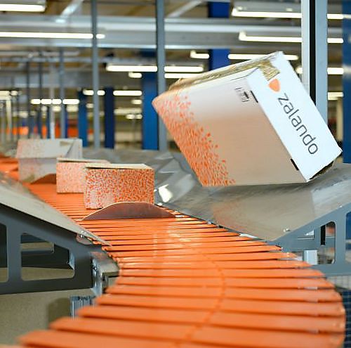 Zalando, online fashion en lifestyle marktleider in Europa, nam 2 deniway transportsystemen in gebruik voor de afvoer van gebruikte dozen in haar logistieke afdeling in Brieselang bij Berlijn. De transporteurs zijn uitgerust met een 1,6 kw motor en bedienen 3 van de 4 lijnen. Hier worden retourpakketten geopend, producten opnieuw gestockeerd en de lege dozen worden op de conveyor geplaatst.