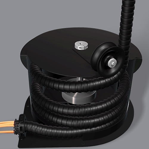 Het 3D kabelrupssysteem 'e-drum' voor indoorkranen en werkplatforms werd ontwikkeld voor de veilige geleiding van energie, data en andere media, zoals lucht en vloeistoffen. Binnenin het compacte en volledig beschermende ontwerp bevindt zich een driedimensionale triflex R kabelrups die multi-asbewegingen van de kabels mogelijk maakt in elke bewegingsrichting. Dankzij het design is er geen sleepring nodig voor de energietoevoer.