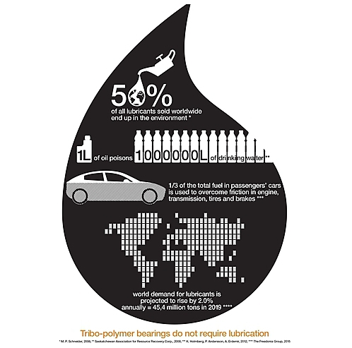 Glijlagers uit high-performance kunststoffen of tribo-polymeer lagers worden globaal in toenemende mate gebruikt in diverse bewegende toepassingen. Wereldwijd zien ontwerpers deze smeermiddel- en onderhoudsvrije kunststof lagers als duurzaam en kostenbesparend alternatief voor metalen lagers (o.m. in vulinstallaties en bouw- en landbouwmachines). Eén reden: de aanschafkosten van tribo-polymeer lagers kunnen in vergelijking tot metalen oplossingen met wel 40 procent gereduceerd worden. Daarnaast kunnen gebruikers ook hun kosten reduceren door eliminatie van de externe smering. Er wordt op externe smeermiddelen bespaard en stilstand van machines wordt significant gereduceerd.